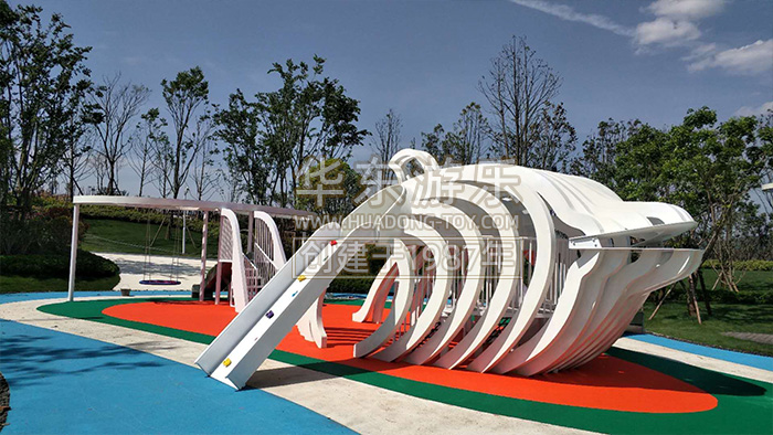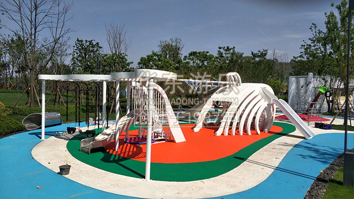 开云游乐贵州贵阳龙里案例是一个以鲸鱼为主题的综合性项目,内置了脚踏喷泉,不锈钢滑梯、秋千、钻洞等游乐设备。