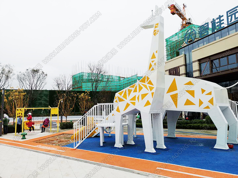 碧桂园天宸房地产项目是一个生活小区的休闲娱乐项目,该项目具有很好的主题性,采用以长颈鹿为主题,生动形象,具有很高的趣味性,观赏性,深受小朋友们的喜爱,项目中增加了开云游乐生产设计的秋千组合,为生活区的人们提供了很好的休闲场地和设施。