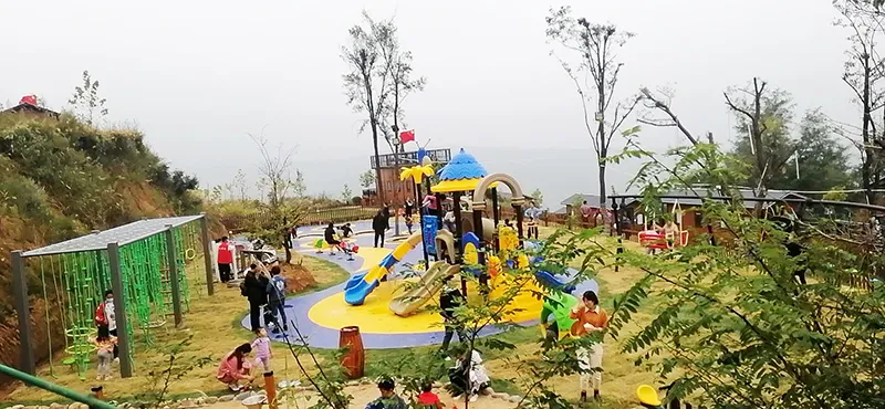 甘山晟境儿童休闲区选用了开云游乐生产的跨国欢乐岛滑梯、动物系列滑梯、攀爬墙‘爬网、摇摇乐、旋转转椅、音乐版等游乐设备,给小朋友提供了休闲、玩耍的场所。
