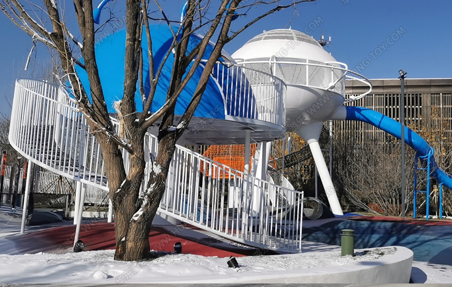 • 山西太原南站新中心万科新都荟飞碟项目是万科房地产的小区项目,主要为生活在该小区的居民提供生活、娱乐、休闲、健身等游乐场所。改项目采用飞碟外观进行设计,充满的科技与神秘感,号召小朋友探索整个宇宙。 、