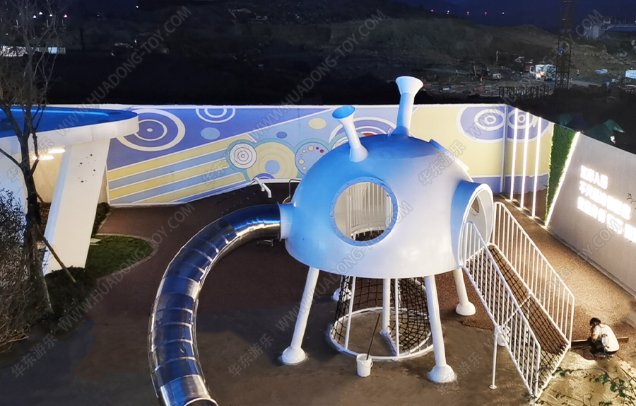 隆回县碧桂园天玺湾非标定制案例采用的是一个由kaiyun开云游乐自主研发和设计的一款造型独特,外观新颖的具有不锈钢滑桶、爬网、钻洞等功能的游乐设备,并在该游乐场设置了摇摇乐、秋千等游乐设备,为生活在该区域的小朋友提供了一个休闲,娱乐 ,健身的场所。