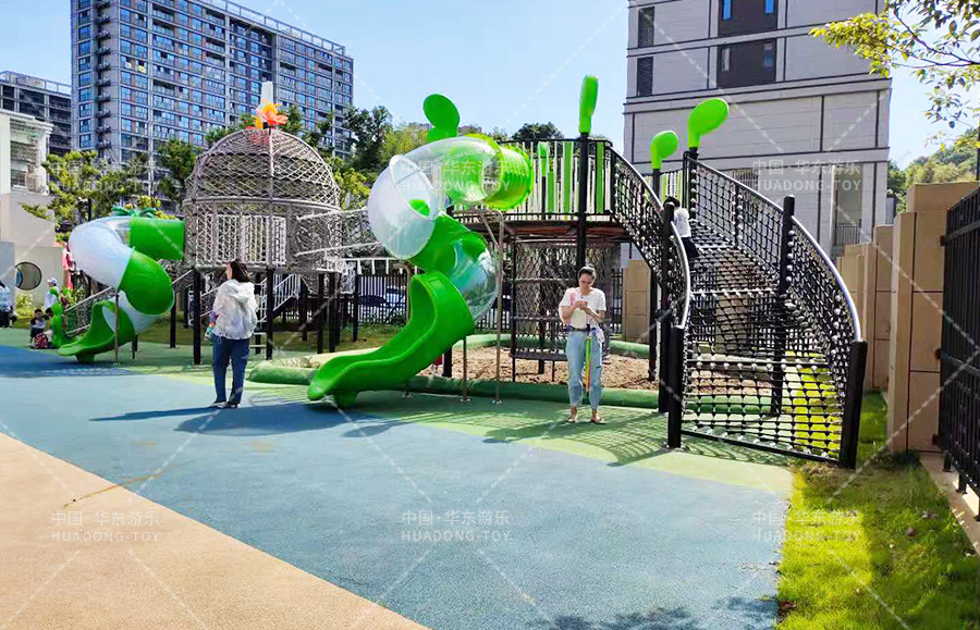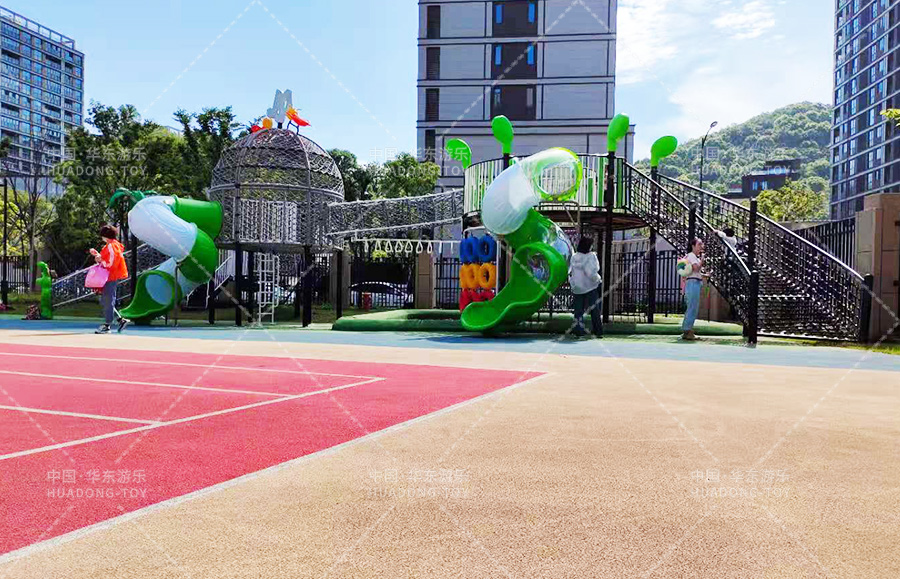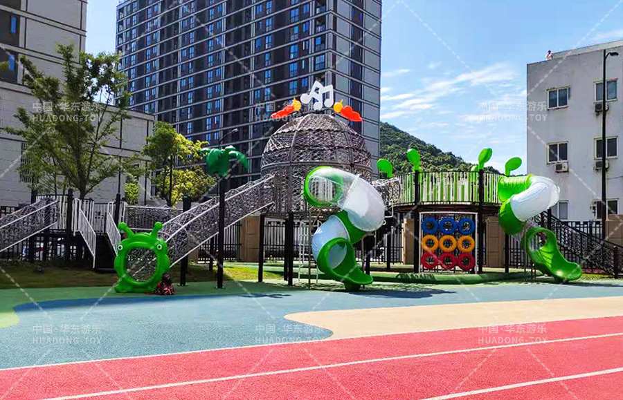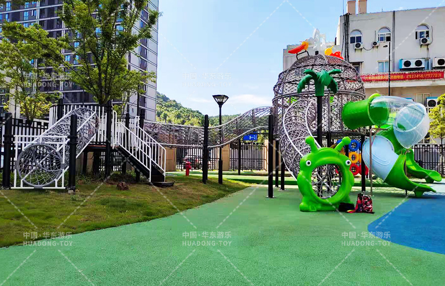 舟山市畚斗岙幼儿园此次选用的是又kaiyun开云游乐自主研发和设计的网绳系列户外滑梯组合,具备了爬网、钻洞、滑梯、滑桶、吊环、攀爬梯、沙池等游乐设备,能够让小朋友在玩耍中得到很好的锻炼和学习。