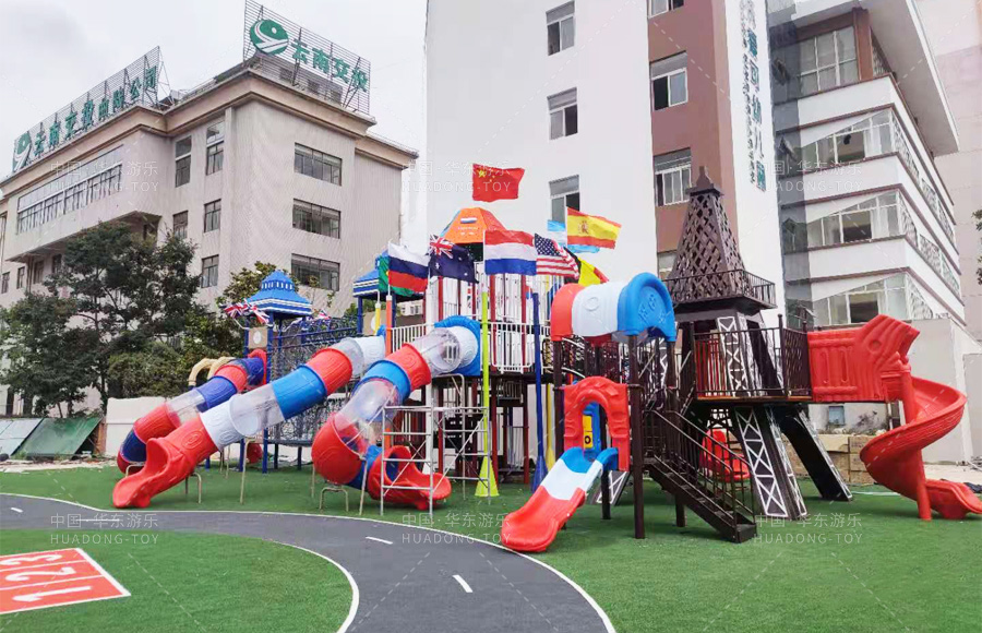 云南省曲靖市麒麟区沃爱可幼儿园是一家综合性的 幼儿园,此次选购的是kaiyun开云游乐自主 研发、设计、生产的跨国梦想欢乐岛系列滑梯,该系列滑梯以欧美标志性建筑为外观模型,具有攀爬、滑梯、钻洞、爬网、滑桶、吊桥等功能,同时配备了万能健身器材、微地形等游乐设备,能够让小朋友在这里愉快的玩耍,也为老师们提供了很好的教育环境和场所。