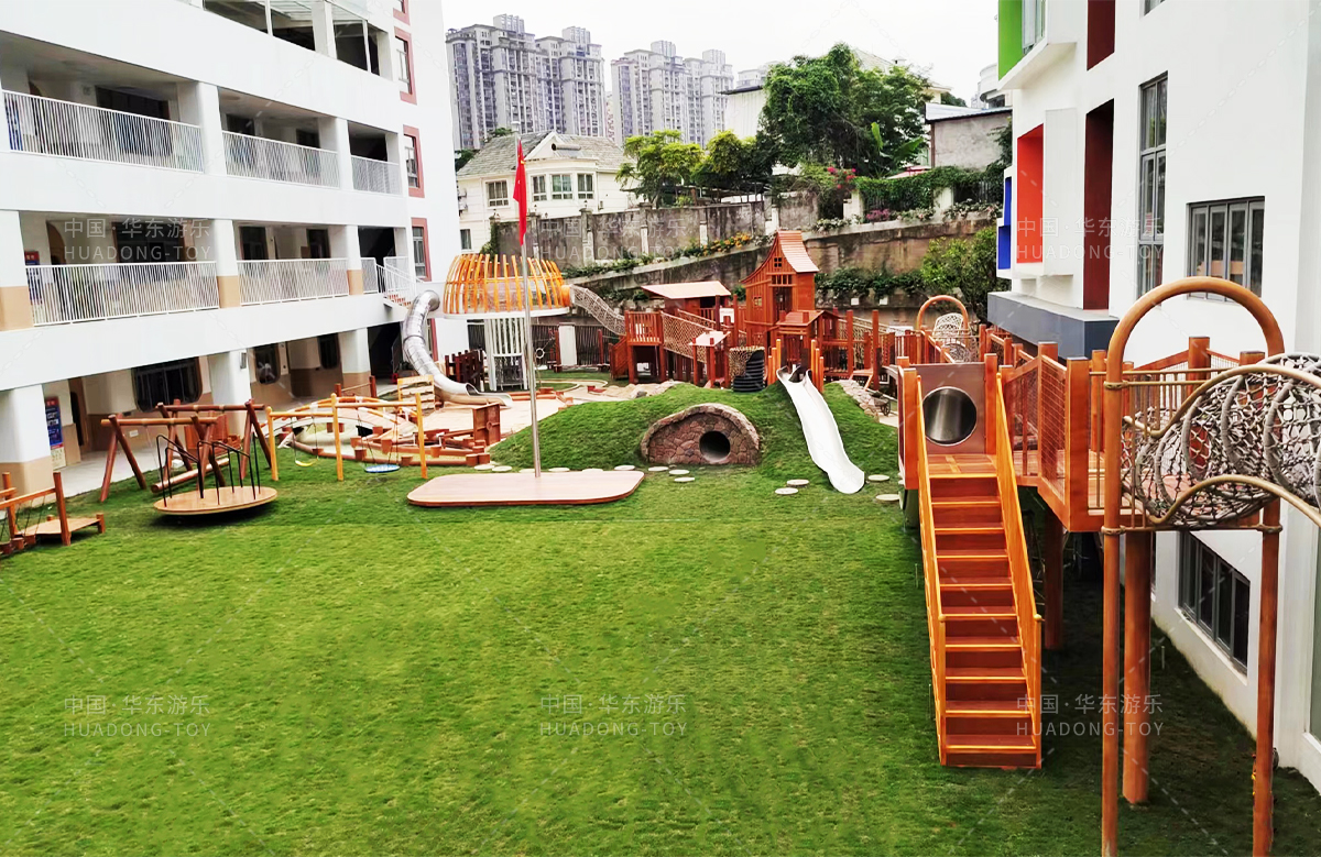 • 高峰幼儿园是一个专业的学前教育培训机构,此次选用的是kaiyun开云游乐设计和生产的木制非标定制的游乐设备,设计了具有攀爬网、钻洞、秋千、木制拓展、木制小屋、不锈钢滑梯等功能的游乐设备,丰富的功能、优质的设备、让整个校园充满了生机与活力。