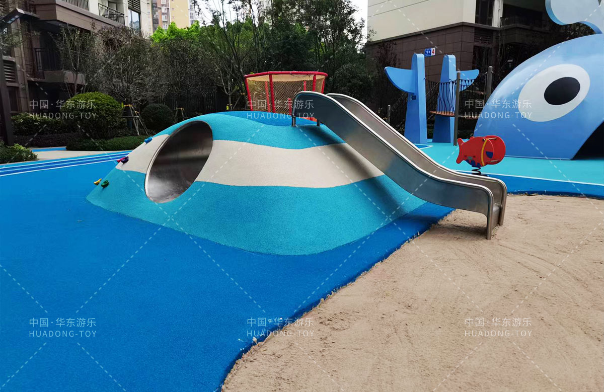 该项目采用的是以海洋为主题的儿童游乐园,整个项目以海洋里游荡的大鲸鱼为主要背景,设计了小朋友喜欢的滑梯、钻洞、沙池、盘爬坡等游乐设备,为小朋友的生活学习 提供了一个很好的娱乐场所。