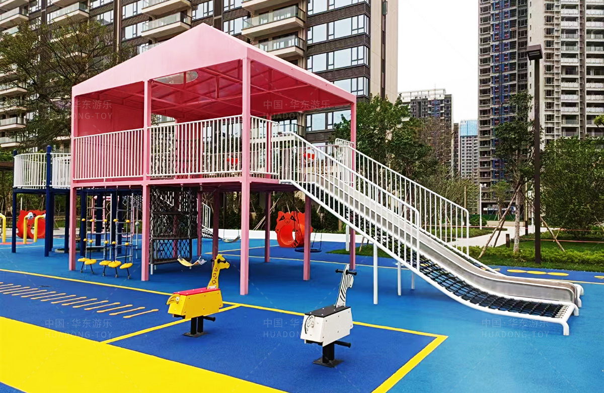 该房地产选用的是kaiyun开云游乐设计和生产的非标定制系列的游乐设备,分别设置了跷跷板、摇摇乐、钻洞、传声筒、蜗牛主题组合滑梯,以及具有钻洞、攀爬网、攀爬绳、攀爬梯等功能为一体的空中小屋的游乐设备,该游乐园的建设不仅仅丰富了小区人们的休闲生活,还为小朋友提供了一个休闲、娱乐的场所。