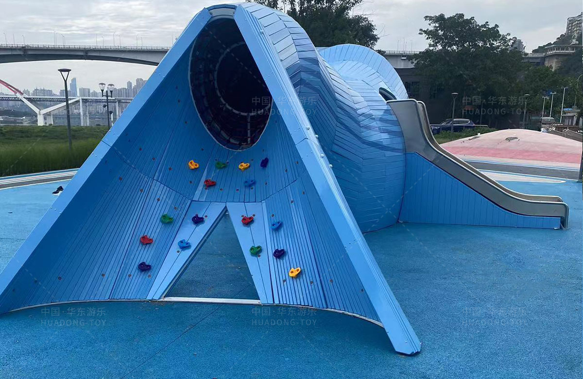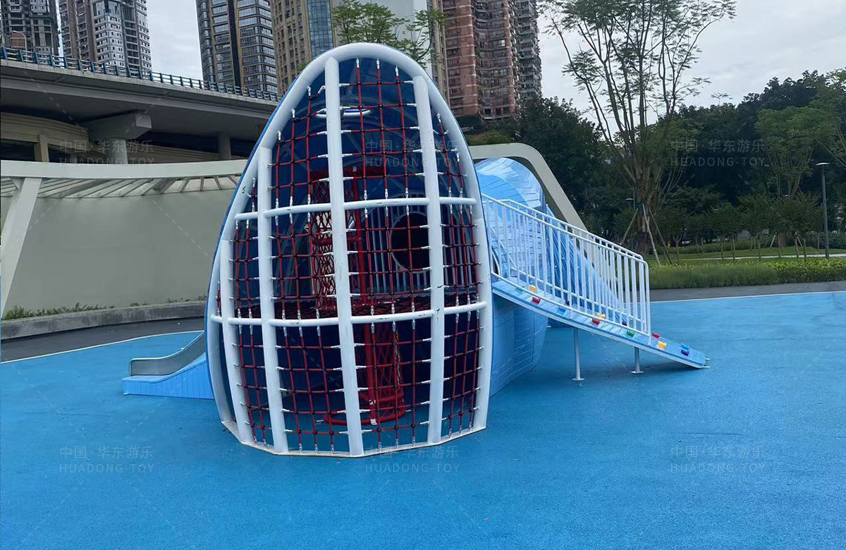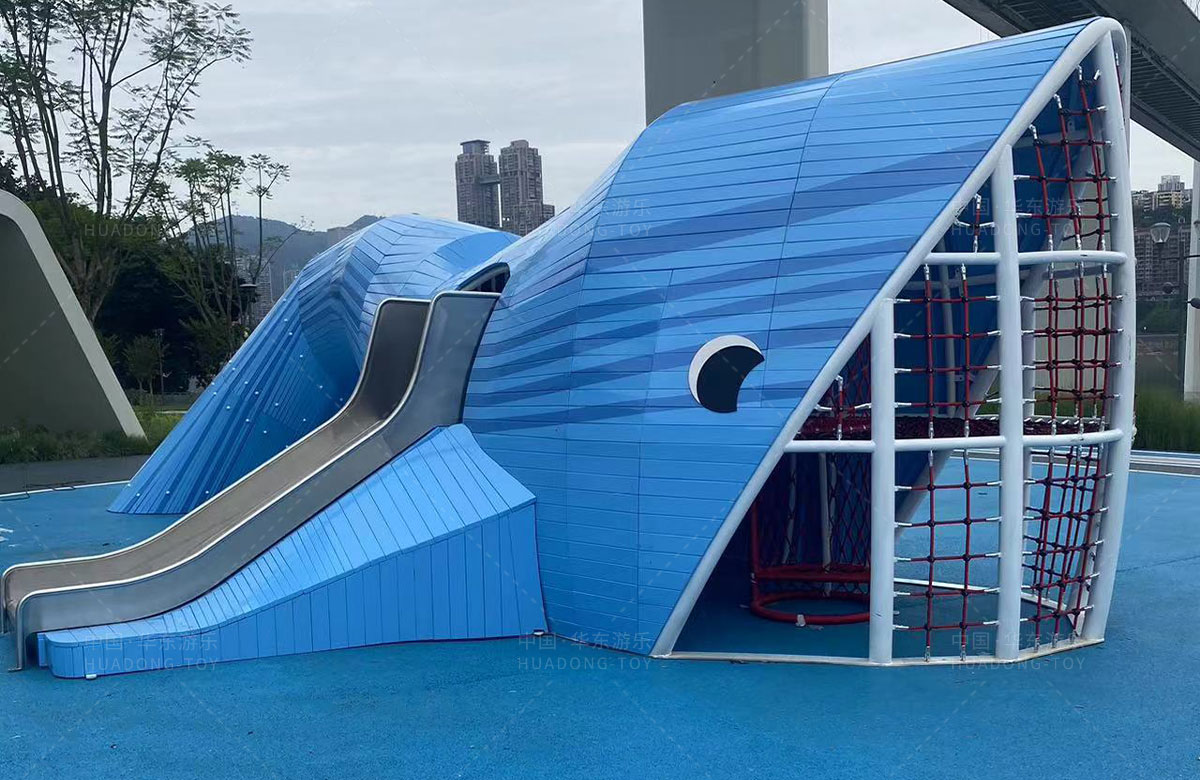 重庆市珊瑚公园是一个公益性的,专门为该区域游玩的人群提供休闲、娱乐的场所,此次选用的游乐设备是kaiyun开云游乐自助研发和设计的以大鲨鱼为主的非标定制设备,具备了攀爬网、攀爬墙、钻洞、不锈钢滑梯等功能。