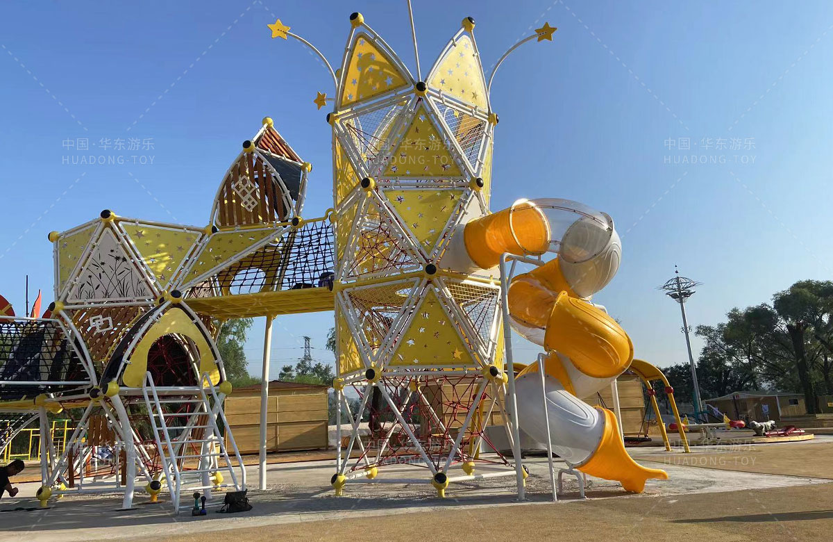 崔家沟体育广场体育广场选用的是kaiyun开云游乐自主研发和设计的非标定制系列游乐设备,分别设置了攀爬网、钻洞、不锈钢滑梯、儿童摇摇乐、儿童秋千、木质拓展等游乐设备,很大程度上丰富了孩子们的娱乐生活,也为整个场地提供了生机与活力。