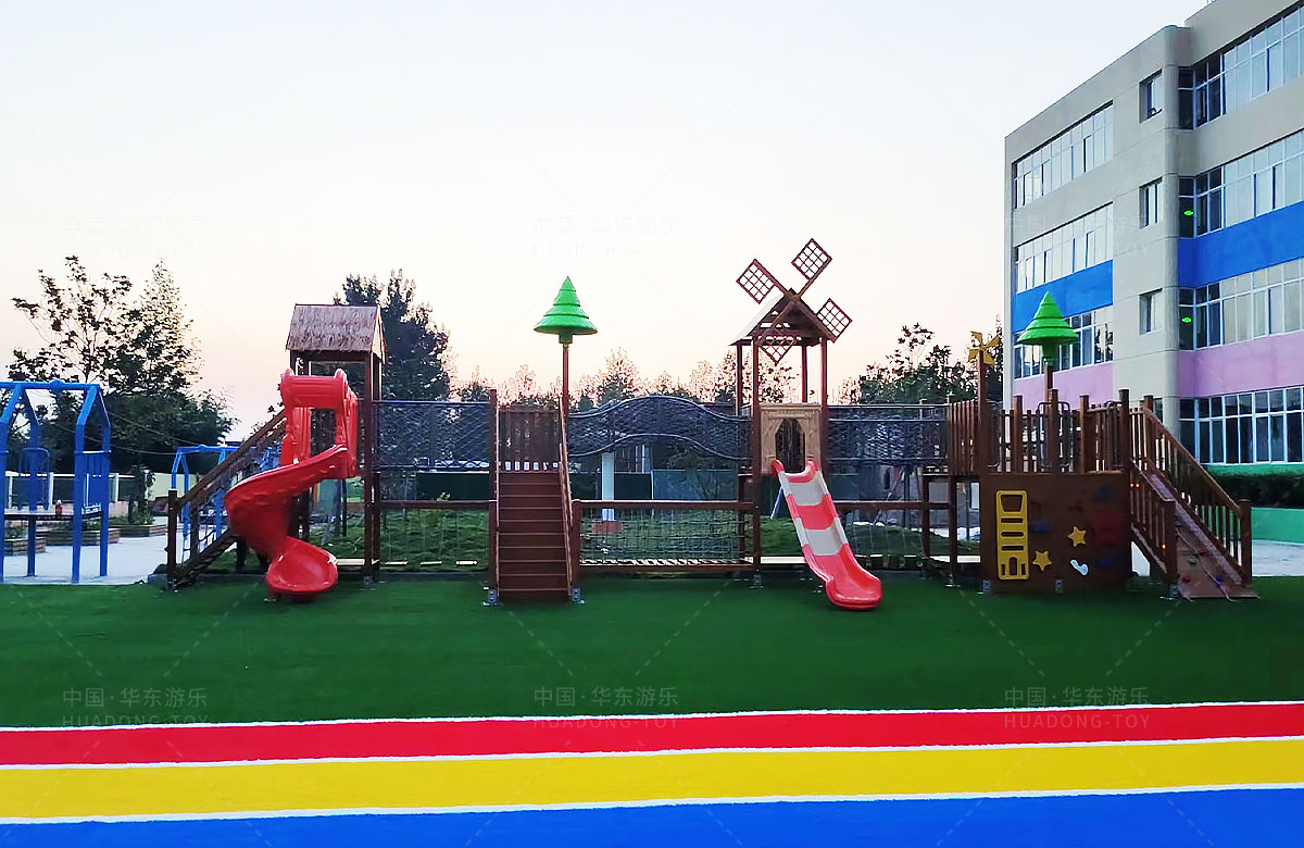 团林镇中心幼儿园是一所专业性的学期教育学校,此处选用的是kaiyun开云游乐自主研发和设计的魔法屋系列组合滑梯和木制拓展游乐设备,具备了攀爬、钻洞、滑梯、攀爬网、攀爬梯等功能为一体,不仅仅为小朋友提供了一个很好的游乐环境,也为老师的教学提供了帮助。