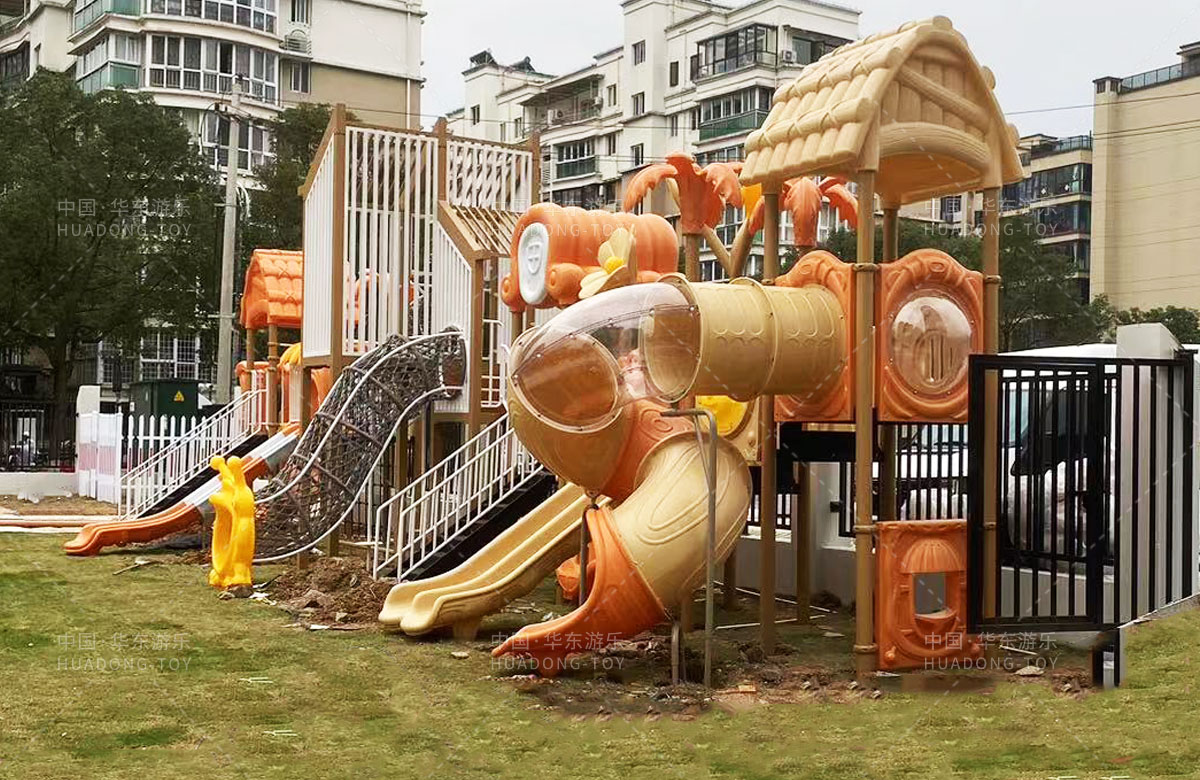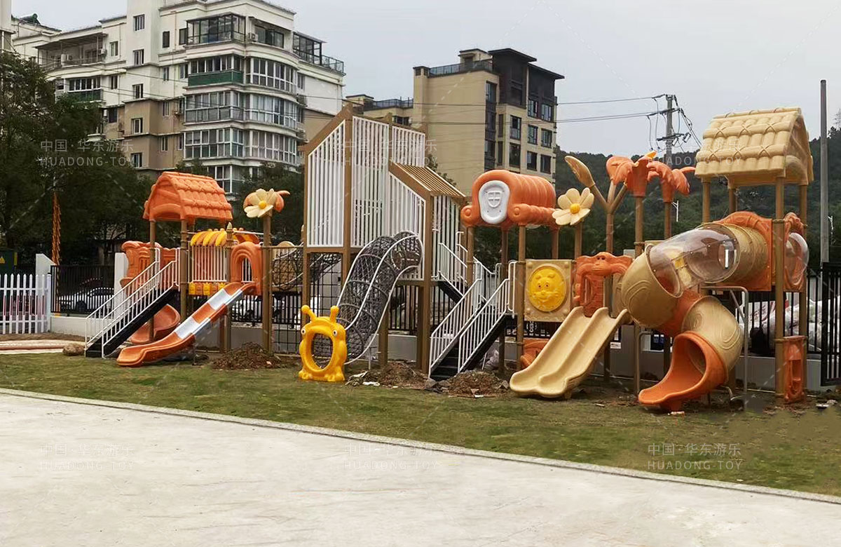 永嘉县童真幼儿园是一家专业的学前培训学校,此次选用的儿童游乐设备是kaiyun开云游乐自主研发和设计的大型户外组合滑梯,该滑梯是一款具备了攀爬网、大型滑筒、旋转滑梯、直行走梯、双人滑梯等功能为一体的综合性游乐设备。