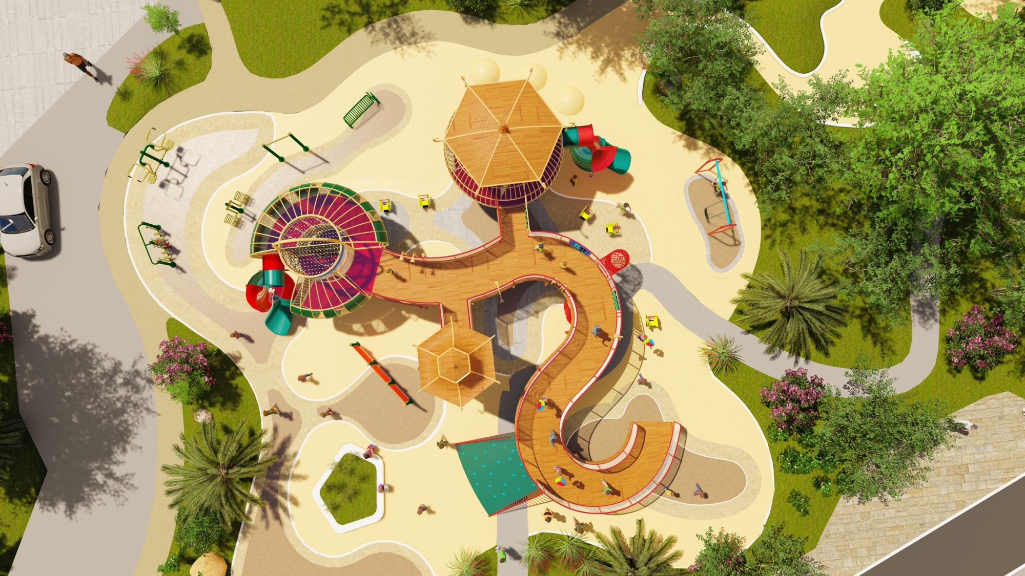 主题公园、学校、房地产小区、市政广场、超市、酒店等