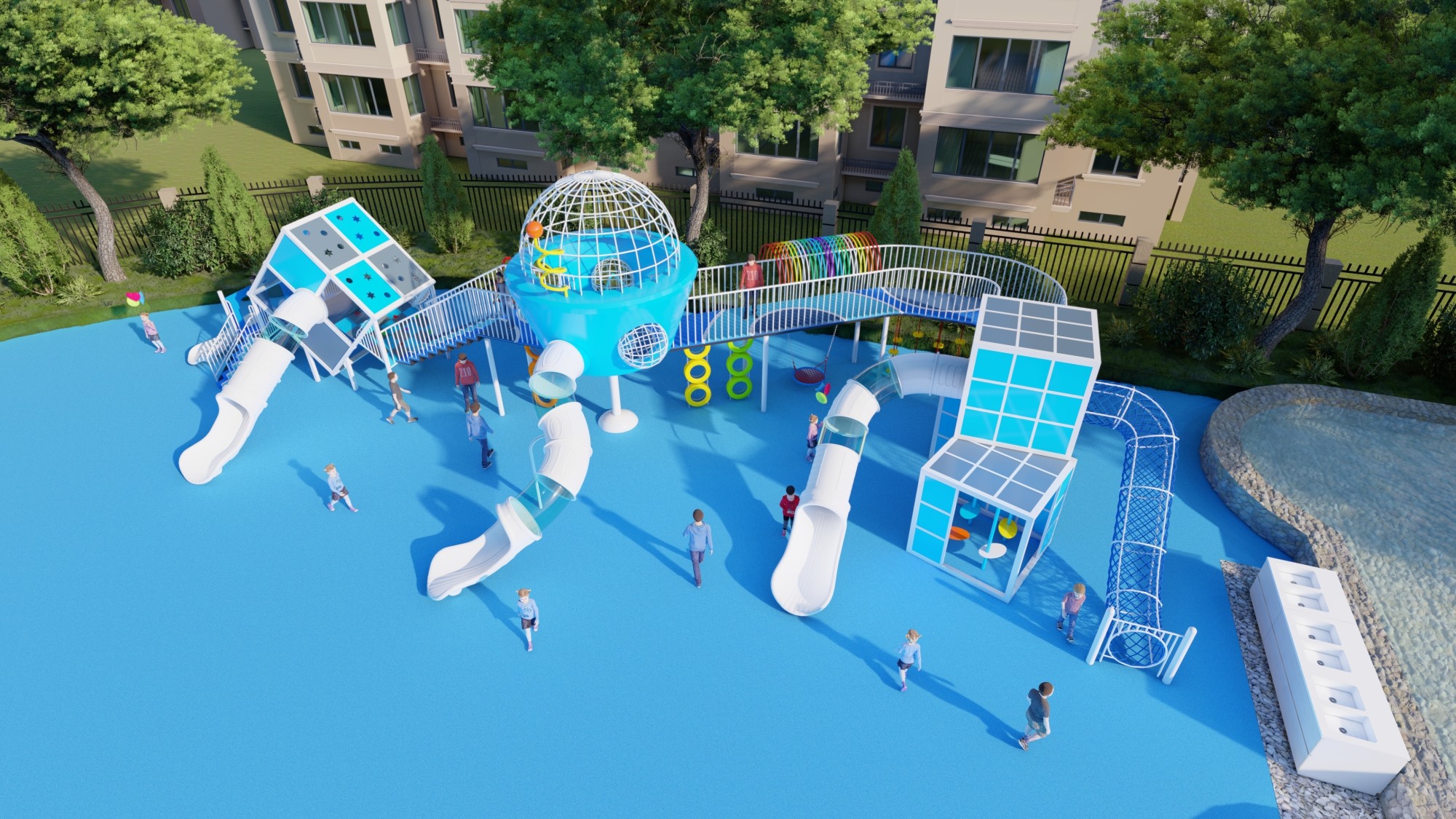 主题公园、学校、房地产小区、市政广场、超市、酒店等