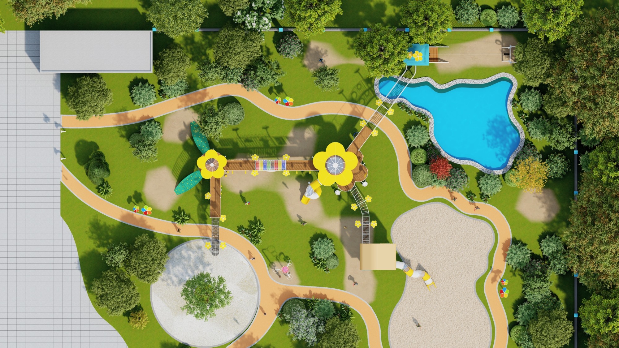 主题公园、学校、房地产小区、市政广场、超市、酒店等