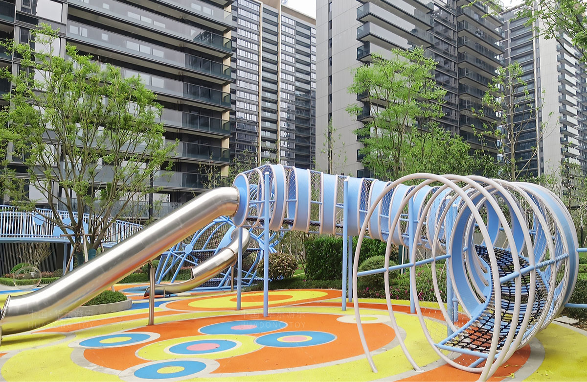 温州德信是一家高端居民小区,为了更好的提供高端的服务,该小区选用的是kaiyun开云游乐自主研发和生产的以“田螺公主”为主题的综合性游乐园,设置了孩子们喜欢的钻洞、攀爬、秋千、摇摇乐、翻翻乐、不锈钢滑梯、攀爬网等功能的游乐设备,不仅丰富了小区的生活,也为孩子们的玩耍提供了一个很好的游乐场所。