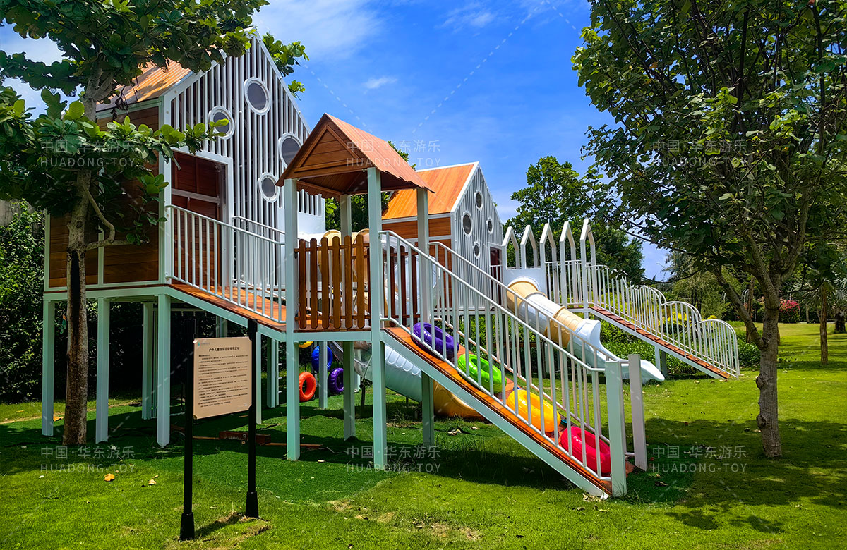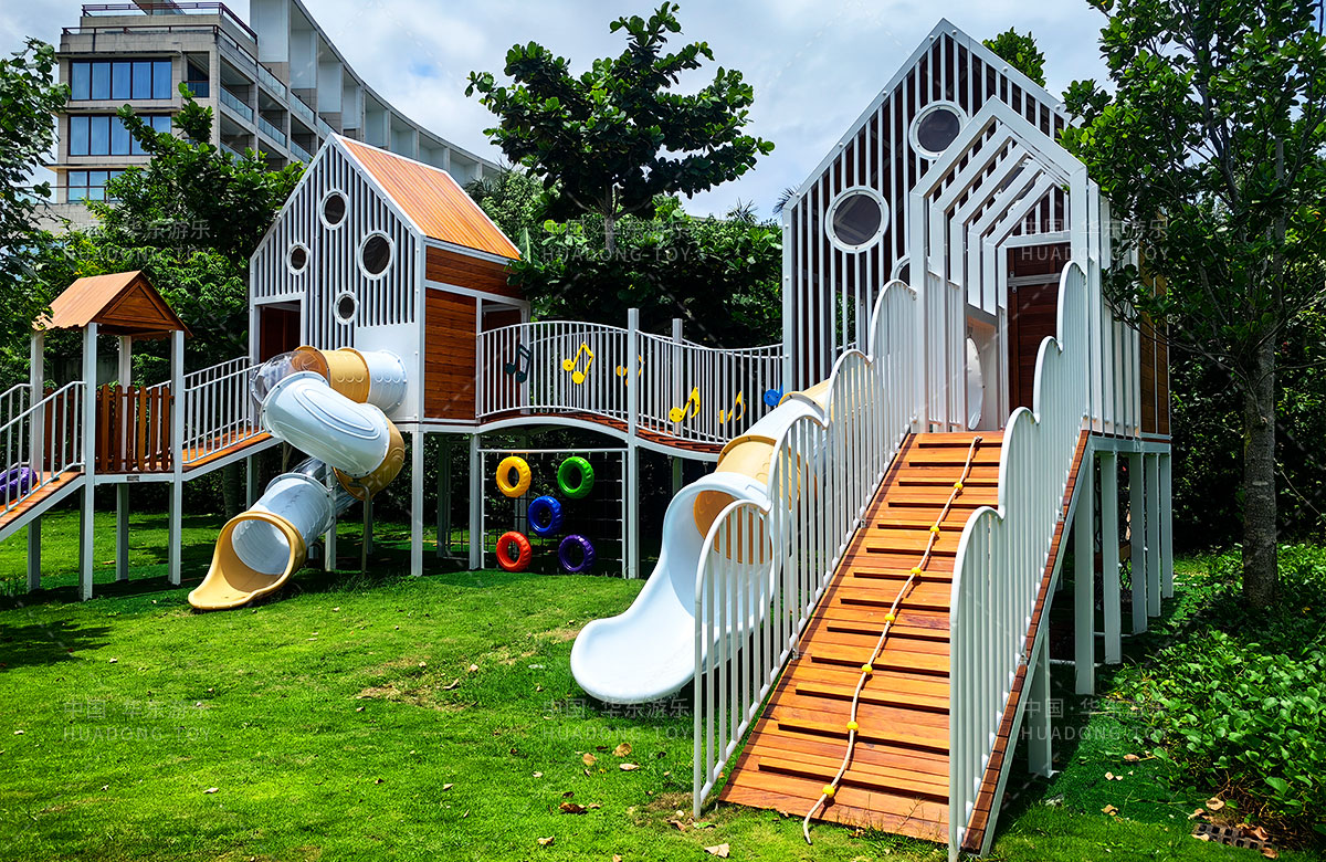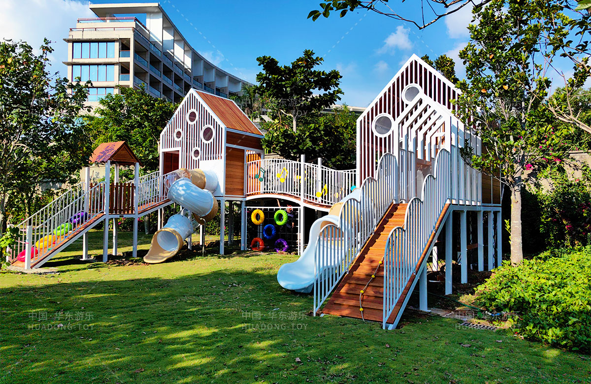 三亚天涯蓝海度假酒店是一个高端的休闲、旅游度假酒店,为了更好的为各位客户提供更加高端和更加完美的旅行服务,该酒店选用了kaiyun开云游乐自主研发和设计的非标定制的多功能组合游乐设备,该设备具备了攀爬绳、攀爬网、旋转滑梯、游戏小屋等系列功能。