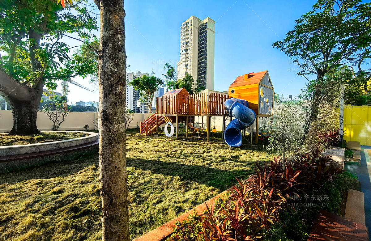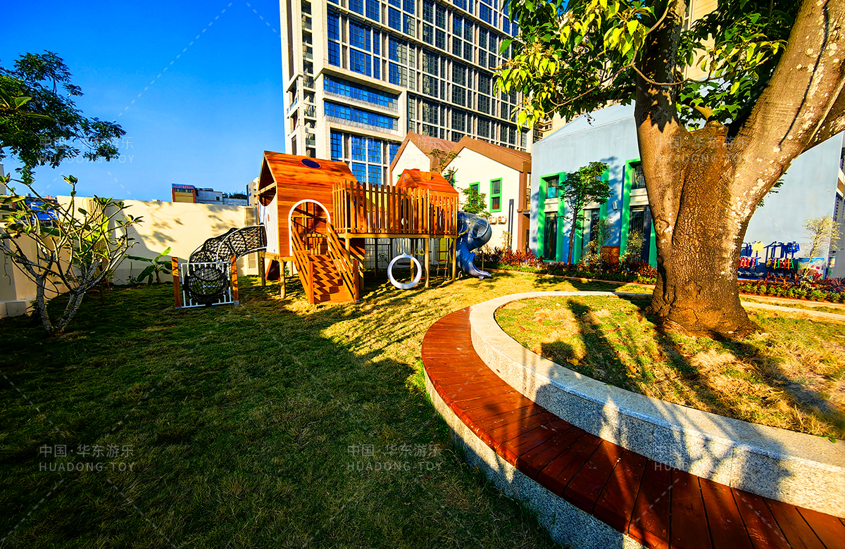海南省农垦总局机关幼儿园选用的是kaiyun开云游乐自主研发和设计的木质系列非标定制的游乐设备,该游乐设备具备了攀爬网、攀爬梯、月亮秋千、旋转滑梯、儿童秋千、平衡绳等功能为一体,该游乐设备的设置不仅仅为孩子们的玩耍提供看保障,更是为老师的教学提供了帮助。