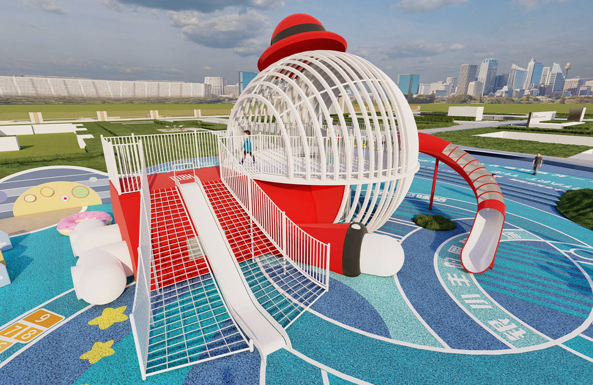 • 山东省银丰玖玺城崇和院选用的是银丰地产旗下的IP主题人物 银小丰 为主题设计的主题性游乐设备,该设备具备了攀爬网、不锈钢滑梯、钻洞等功能,同时为了更好的为生活在小区的人们提供方便和服务,我们还设置了组合秋千、跷跷板、摇摇乐地蹦床等游乐设备,让整个小区的生活变得更加的充满生机与活力。