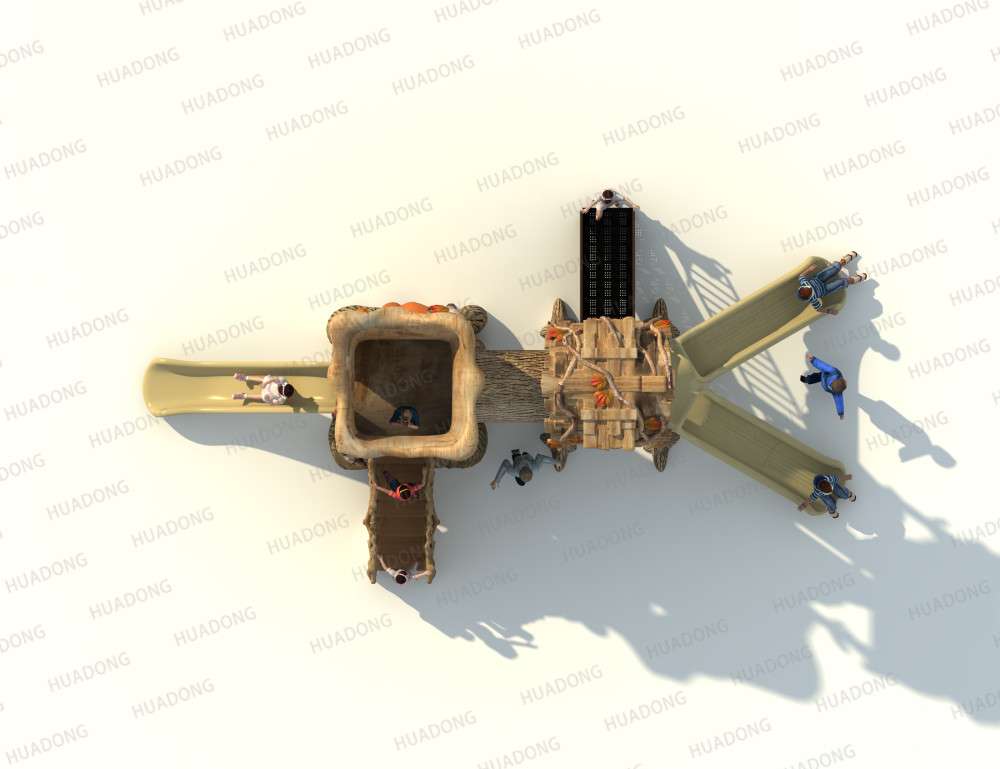• 远古部落系列虽然名字带着“古”字,但是在设计细节处无不透露着艺术与创造性。当孩子在仿真树中探索、冒险、嬉戏游玩时,就像穿越到古老的神秘森林;粗略的树干包围着他们,头顶是高耸的茅草屋,触感真实的枯枝走廊,还有随处可见的小动物们…… 远古部落系列旨在打造区别于其他系列带给孩子们的新鲜感,让孩子们找设计者打造的神秘世界中获得冒险的乐趣。